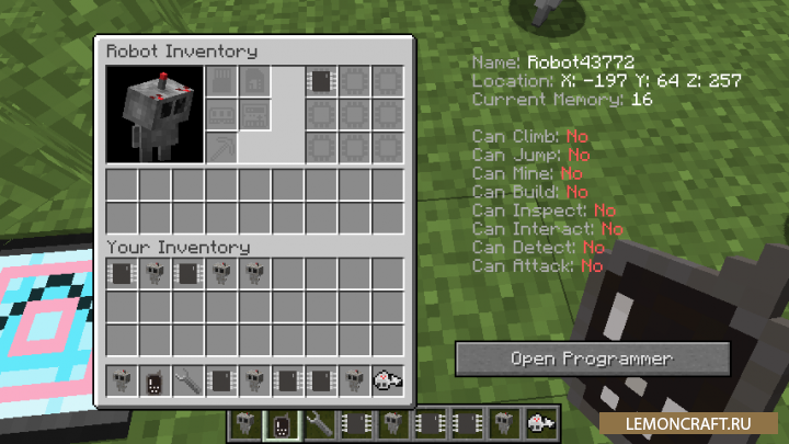 Мод Roboticraft позволит вам почувствовать себя настоящим программистом. Используя язык программирования Python вы сможете создавать роботов, программируя их чипы, и управлять ими. Учтите, что для работы мода, требуется предустановленный Python в вашей операционке. В некоторых операционных системах он установлен по умолчанию.