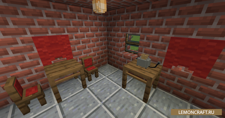 Мод на мебель Exline's Furniture добавляет в игру большое количество мебели и предметов, которые позволят создать уют в вашем доме. В игру будут добавлены столы, стулья, лампы, окна, шторы и даже тостер.